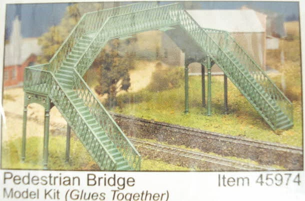 This is a Bachmann 45974 O Pedestrian Bridge Classic Kits. Features includes parts are molded in color, realistic detailing, snap-fit assembly, no glue necessary, easy to assemble.
