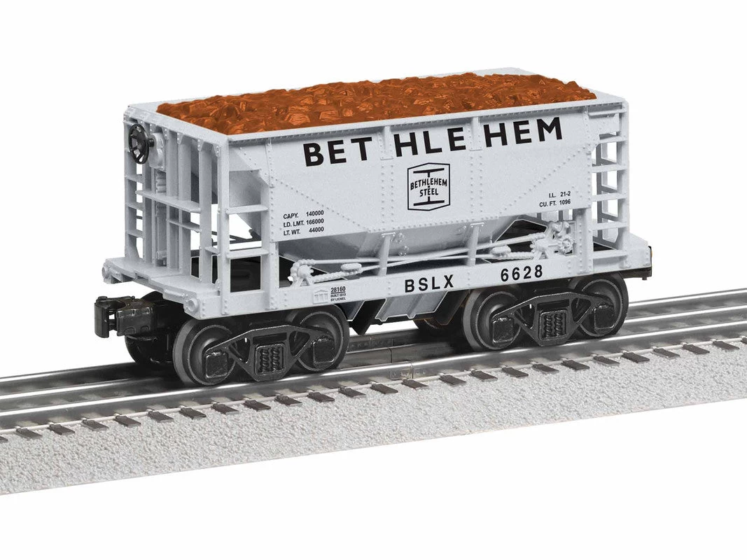 This is a Lionel 1928160 O Bethlehem Steel Ore Car (Pack of 6). Features: 6 Individual road numbers per six pack, Die-cast metal truck with operating couplers.