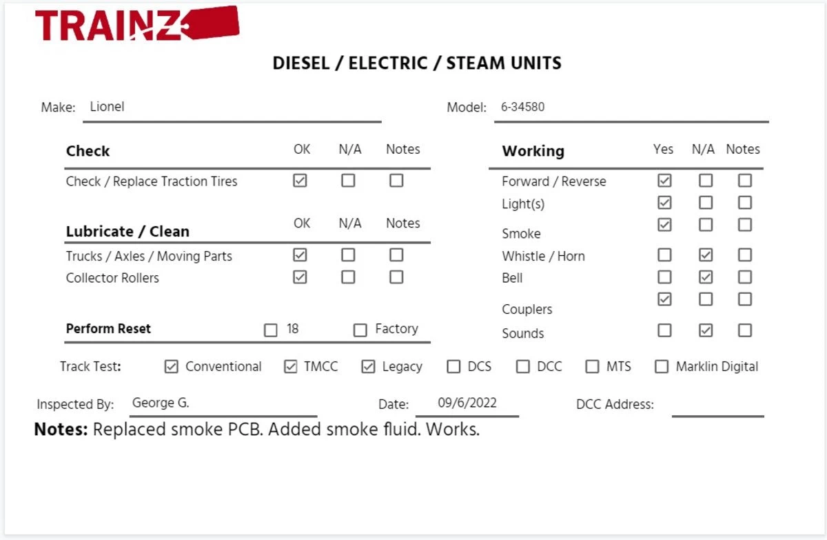 •Adjustable smoke output in LEGACY Control or TMCC mode